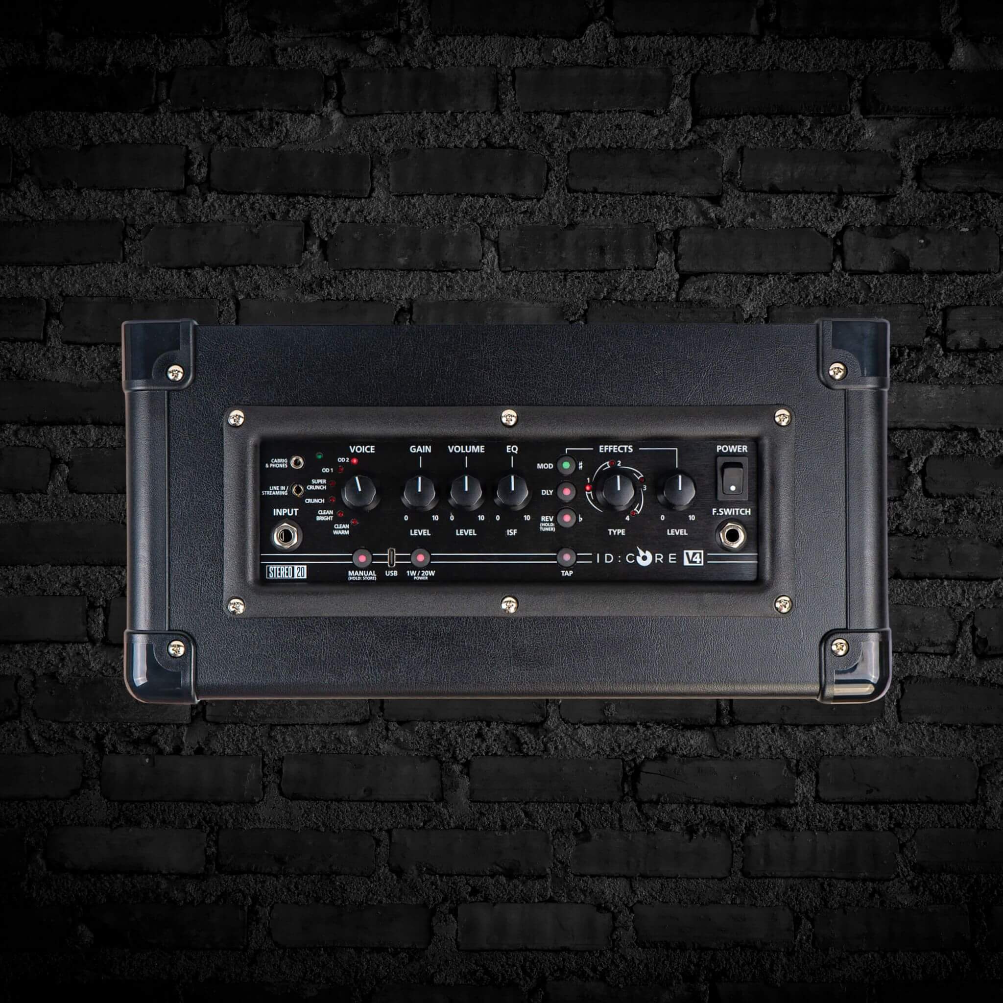 The Blackstar ID:Core V4 Stereo 20 is a modeling combo amplifier designed to take your practice sessions to the next level. Thanks to its incredible sound and cutting-edge features, the ID:Core V4 Stereo 20 also makes a stellar session tool. Choose from six inspiring amp voices that range from classic cleans to scorching leads. Dial in the perfect blend of American and British character with Blackstar’s patented ISF control. Add gloss and dimension to your playing with built-in modulation, delay, and reverb effects, bolstered by Blackstar’s immersive Super Wide Stereo technology. The ID:Core V4 Stereo 20’s TRRS Line In/Streaming jack enables you to film guitar covers and capture performances directly onto your phone, and its 4-channel USB-C output makes low-latency recording and re-amping a cinch. You also get Blackstar’s CabRig Lite emulated output and their brilliant Architect software for deep patch editing and sharing. Finally, the Blackstar ID:Core V4 Stereo 20 is louder than its predecessor, and it includes power reduction down to 1 watt and an eye-grabbing new brushed effect panel for a premium feel.