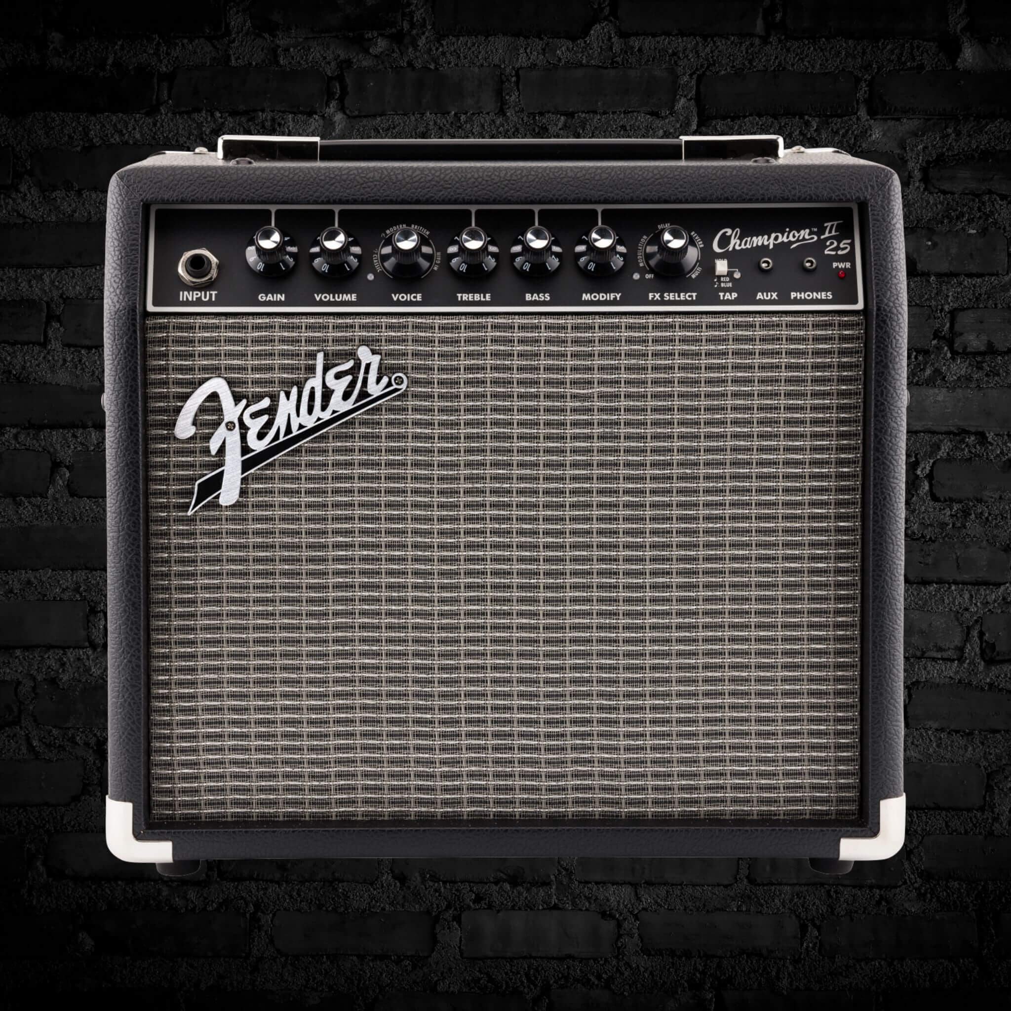 For years, Fender’s Champion combo amplifiers have been cherished as an approachable, seamless solution to unlocking timeless Fender tones. The Champion II 25 boasts a Fender Special Design speaker and traditional fibreboard and textured vinyl construction, as well as ample onboard EQ and effects parameters to lock in any initial tone in seconds. Impromptu jams and practice sessions have never been clearer! By design, the 25-watt Champion II is set to exceed expectations with a full effects package and tap tempo control, amplifying creative possibilities and keeping explorative options open for hours on end. On the road, at home, or on the stage — no matter where you and your Champion II fly, rest assured that you’ll land safely in the arms of customizable, coveted Fender tone.